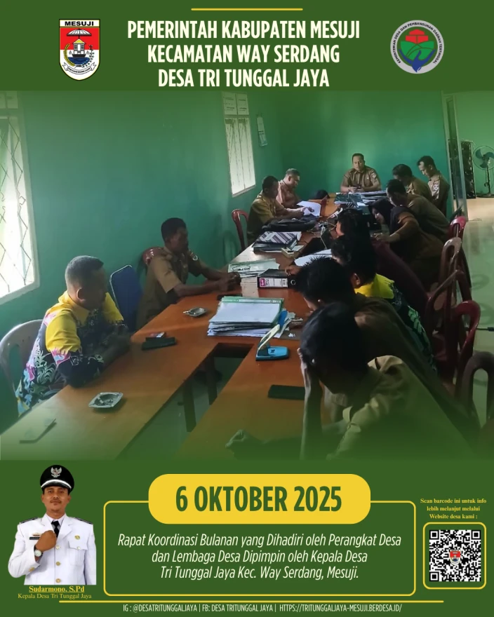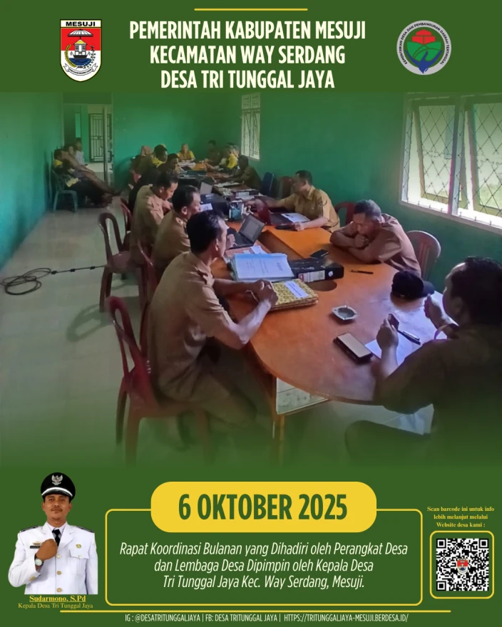 Rapat Koordinasi Bulan Oktober Pemerintah Desa Tri Tunggal Jaya Kecamatan Way Serdang Kabupaten Mesuji 6 Oktober 2025